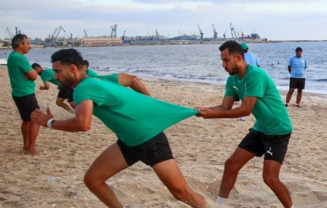 تدريبات النادي المصري على شاطئ بورفؤاد استعداداً للموسم الجديد