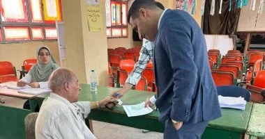 قاضي يساند ناخباً مسناً في التصويت بانتخابات الشيوخ بالقاهرة