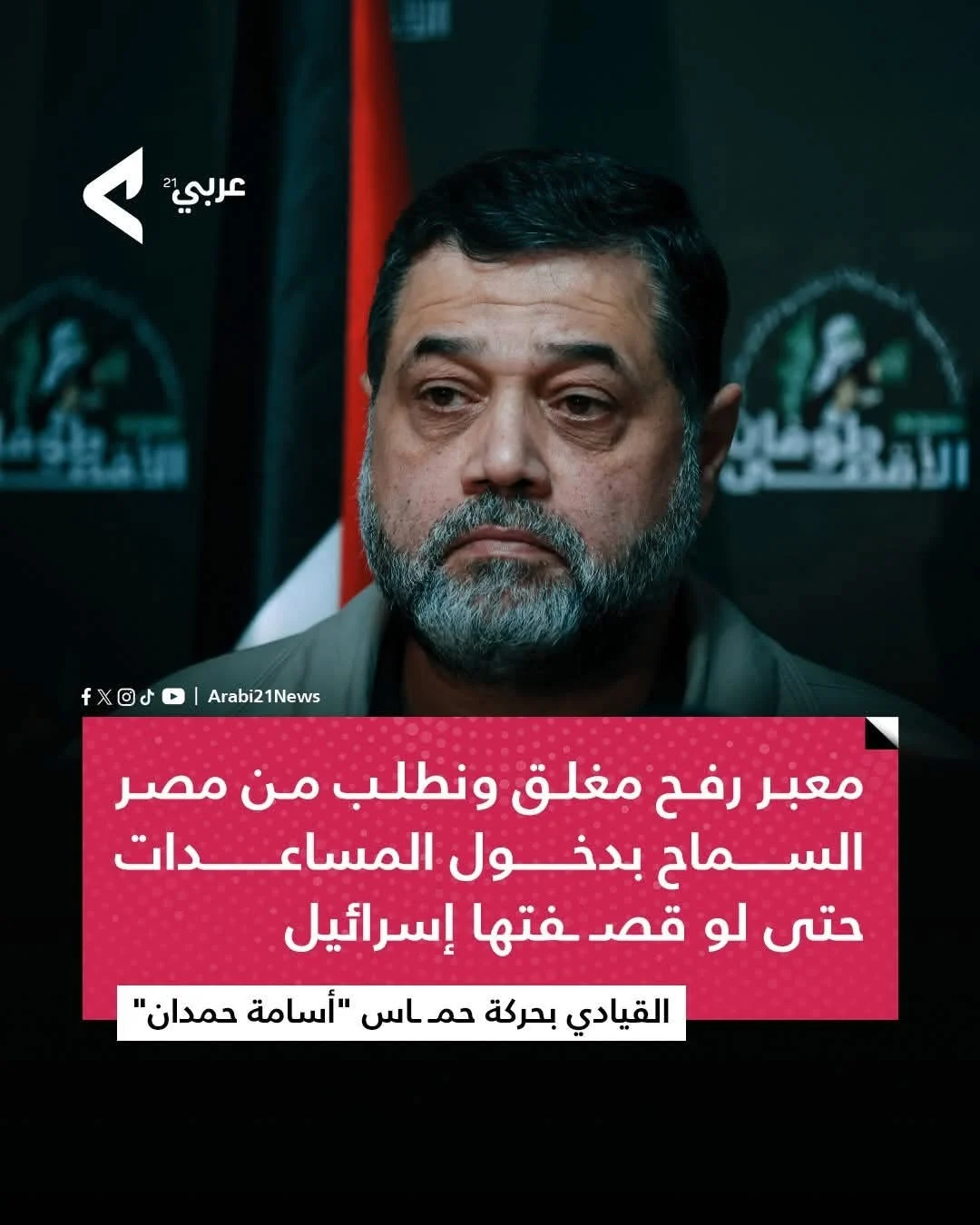 سخر جمهور الفيسبوك بعد خروج أسامة حمدان، القيادي في حركة حماس، على شاشة “الجزيرة” في حلقة جديدة من برنامج “كيف تجرجر مصر لحرب وانت قاعد في التكييف”، ليطرح خطته العبقرية: الاحتلال أغلق معبر رفح من جهة فلسطين، وهناك 22 ألف شاحنة محمّلة بالمساعدات، وعلى مصر أن تدخلها “حتى لو قصفتها إسرائيل”!
