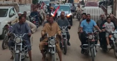 مسيرة مسائية في قرى إسنا بالدراجات النارية والأعلام المصرية.. صور