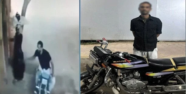 ضبط قائد دراجة نارية تحرش بسيدة في السلام «فيديو»