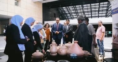 محافظ قنا ونائبه يزوران جناح الحرف التراثية في المتحف القومي للحضارة
