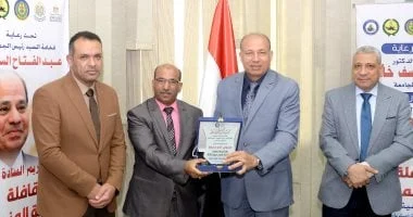 رئيس جامعة المنصورة يكرم أعضاء قافلة جسور الخير 22 تقديرًا لعطائهم في شمال سيناء