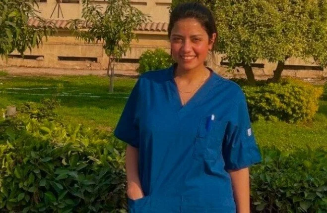- ظهرت سهر الصايغ في صورة جديدة وهي مرتدية زي الأطباء أثناء تأديتها لعملها الأساسي كطبيبة أسنان في مستشفى قصر العيني.