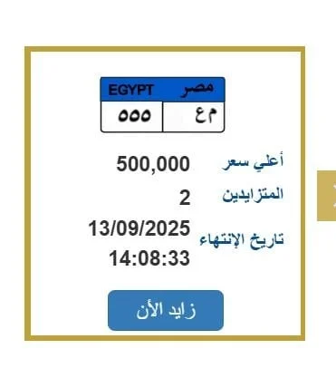 مزاد على لوحة سيارة مميزة تصل قيمتها إلى 500 ألف جنيه