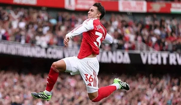 سجل آرسنال هدفه في الدقيقة 34 عبر مارتن زوبيميندي، بعد متابعة كرة مرتدة من دفاع الضيوف، بتسديدة قوية مرت على يسار حارس الفريق المنافس.