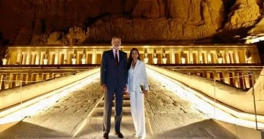 وتظهـر الصور المتداولة الملك وزوجته وهما يلتقطان صورًا تذكارية بمعبد حتشبسوت خلال جولتهما في المعابد المصرية.