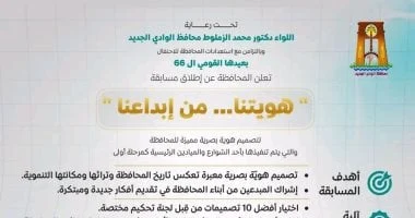 محافظة الوادى الجديد تعلن عن مسابقة لتصميم الهوية البصرية للمحافظة.. تعرف على الشروط