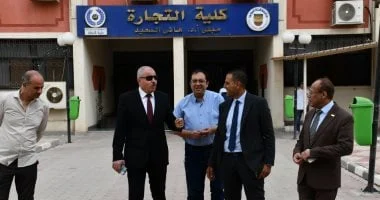 وخلال الجولة في كلية التجارة كان في استقباله الدكتور أحمد عزمي عميد الكلية، والدكتور محمد أبو العلا منسق البرامج الجديدة، والدكتور أحمد ربيع رضوان أمين الكلية. وأكد على أهمية انتظام العملية التعليمية في مختلف الأقسام، مشيرًا إلى أن الكلية تُعد من أكثر كليات الجامعة كثافة طلابية بواقع إجمالي قدره 6721 طالبًا وطالبة (3873 طالبًا و2848 طالبة). كما أشار إلى أن البرامج المميزة تجذب أعدادًا متزايدة، حيث بلغ عدد المقيدين بها 1459 طالبًا وطالبة (762 طالبًا و697 طالبة)، وهو ما يعكس رؤية الجامعة في التميز والجودة الأكاديمية وتوافر متطلبات سوق العمل.