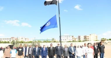 شاهد تحية العلم في أول يوم دراسة بكلية علوم الرياضة بجامعة قناة السويس.. صور