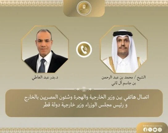 وزير الخارجية يبحث مع نظيره القطري التطورات الأخيرة في الجهود الرامية لوقف الحرب على قطاع غزة