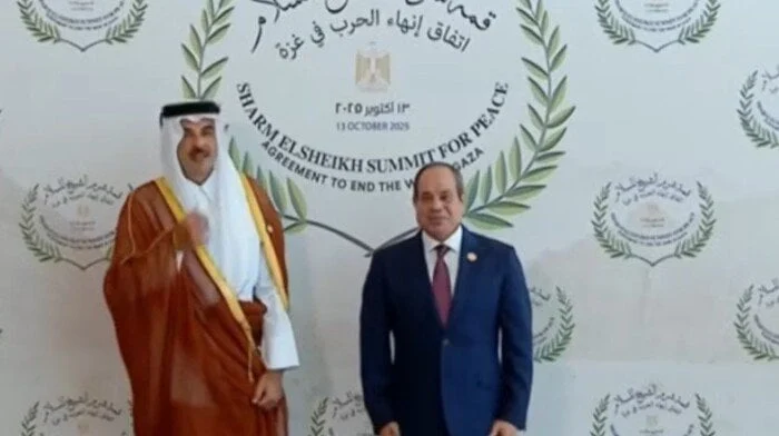 استقبل الرئيس عبد الفتاح السيسي، أمير دولة قطر، تميم بن حمد آل ثاني، في مدينة شرم الشيخ للمشاركة في قمة السلام التي تهدف إلى إنهاء الحرب في قطاع غزة.