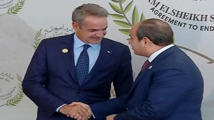 استقبل الرئيس السيسي رئيس وزراء اليونان في مقر قمة شرم الشيخ للسلام
