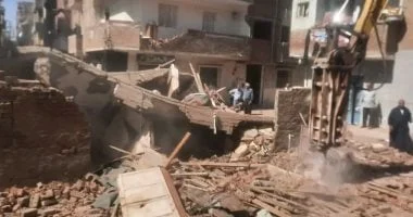 إزالة عقار آيل للسقوط بشارع في منطقة هندسة الري بمنيا القمح بالشرقية