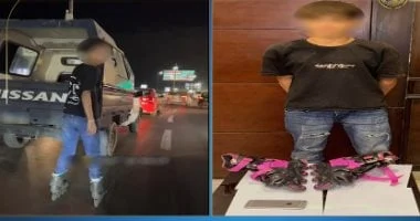 أعلنت وزارة الداخلية تفاصيل حادثة انتشرت عبر مواقع التواصل الاجتماعي، ظهر فيها شخص يتشبث بالصندوق الخلفي لإحدى سيارات الشرطة وهو يرتدي حذاء تزحلق، ما عرض حياته وحياة الآخرين للخطر.