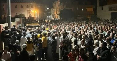 أهالى البحيرة يشيعون جنازة ثلاثة أشخاص لقوا مصرعهم فى حادث تصادم بطريق بنها الحر