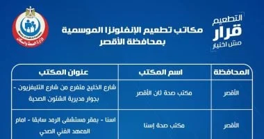 مكاتب تطعيم الإنفلونزا الموسمية بمحافظة الأقصر