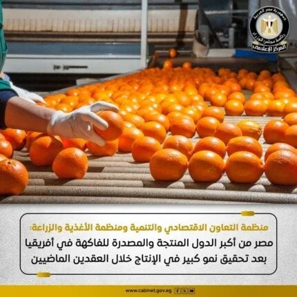 صدر تقرير مشترك من منظمة التعاون الاقتصادي والتنمية (OECD) ومنظمة الأغذية والزراعة للأمم المتحدة (FAO) يشير إلى نمو كبير في إنتاج الفاكهة بمصر خلال العقدين الماضيين، ما عزز مكانتها كأحد أبرز الدول المصدّرة في إفريقيا.