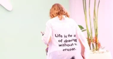 ارتدت يسرا بلوزة مطبوعة عليها عبارة “الحياة هي فن الرسم دون ممحاة”، وهو تعبير عن روحها التي لا تقبل التراجع أمام التحديات وتواصل السير رغم كل العثرات.