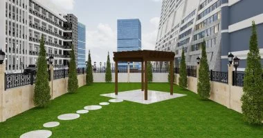 كما ستُركب بلاط انترلوك ولاند مارك، وأعمدة تجميل داخلية وخارجية، وتُزرع العشب وتُنشَّأ التشجير، مع تخصيص ثلاثة ممرات لربط الشارع الرئيسي بمنطقة العمارات، إضافة إلى أبواب رئيسية تُفتح على الشارع وأبواب فرعية مطلة على الممرات.