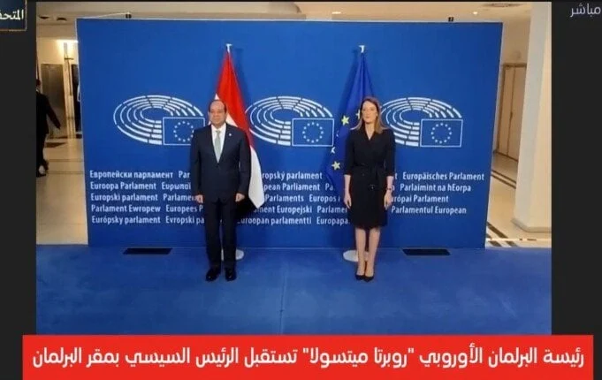 استقبلت رئيسة البرلمان الأوروبي روبرتا ميتسولا الرئيس عبد الفتاح السيسي بمقر البرلمان الأوروبي، وخلال الاستقبال تم عزف السلام الوطني المصري والسلام الخاص بالبرلمان.