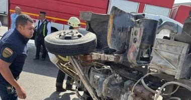 أعلنت الإدارة العامة للمرور أن 11 شخصاً أصيبوا في حادث انقلاب سيارة ربع نقل أعلى طريق السويس الصحراوي. وعلى الفور توجهت فرق المرور والإسعاف إلى مكان الحادث. أرسلت سيارات الإسعاف المصابين إلى المستشفى لتلقي العلاج. وقامت فرق الإنقاذ برفع حطام الحادث بالكامل واتخاذ الإجراءات القانونية اللازمة.