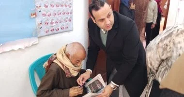 رئيس لجنة فرعية بالمطرية يساعد ناخبًا مسنًا على التصويت ويجلب له كرسيًا
