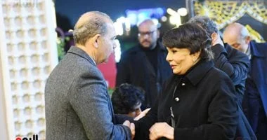 فردوس عبد الحميد وكريم محمود عبد العزيز وحسن الرداد في عزاء أرملة مصطفى متولى