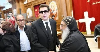 هاني رمزي يستقبل واجب العزاء في والدته بكنيسة أبي سيفين