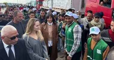 أنجلينا جولى تتفقد معبر رفح وسط اصطفاف قوافل المساعدات المصرية