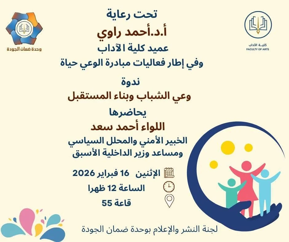 جاء ذلك خلال ندوة فكرية موسعة استضافتها جامعة حلوان، بحضور عدد كبير من أعضاء هيئة التدريس وطلاب كلية الآداب، حيث سادت الندوة أجواء وطنية عكست حجم المسؤولية الملقاة على عاتق الأجيال الجديدة في ظل التحديات التي تواجه الدولة المصرية داخليًا وخارجيًا.
