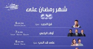 تعلن الصفحة الرسمية لقناة CBC عن مواعيد عرض مسلسلات رمضان 2026 وتوضح أوقات الإعادة بشكل دقيق. يركز الإعلان على ثلاثة مسلسلات رئيسية هي على قد الحب وحد أقصى وتوابع، مع بيان أوقات بثها وإعادة عرضها. يسعى الإعلان إلى تنظيم المشاهدة وتحديد جداول زمنية واضحة للجمهور.