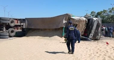 إصابة سائق في انقلاب سيارة نقل ثقيل بطريق الكافورى بالإسكندرية