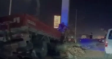 تعلن الأجهزة الأمنية وقوع حادث مروري مساء اليوم على كوبري الحضارة في اتجاه التجمع الخامس. تبين من المعاينة أن الحادث سببه فقدان السيطرة من قبل سائق نصف النقل أثناء الصعود من الطريق الدائري إلى الكوبري، ما أدى إلى اصطدامه بعمود إنارة ثم ارتطامه بالسيارة الملاكي. وتم نقل المصابين إلى أقرب مستشفى لتلقي العلاجات والرعاية الطبية اللازمة.
