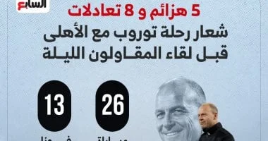 5 هزائم و8 تعادلات: شعار رحلة توروب مع الأهلى قبل لقاء المقاولون
