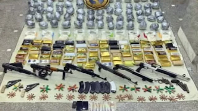 المضبوطات التي ضبطت بحوزتهم شملت 140 كيلوجرام من المواد المخدرة المتنوعة و10 قطع أسلحة نارية.