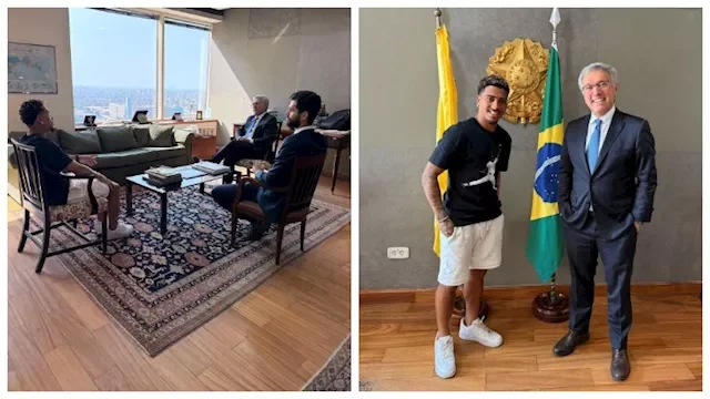 استقبل السفير البرازيلي في مصر باولينو فرانكو دي كارفاليو نيتو اللاعب خوان بيزيرا خلال زيارة رسمية، وفق ما نشرته السفارة على إنستجرام.