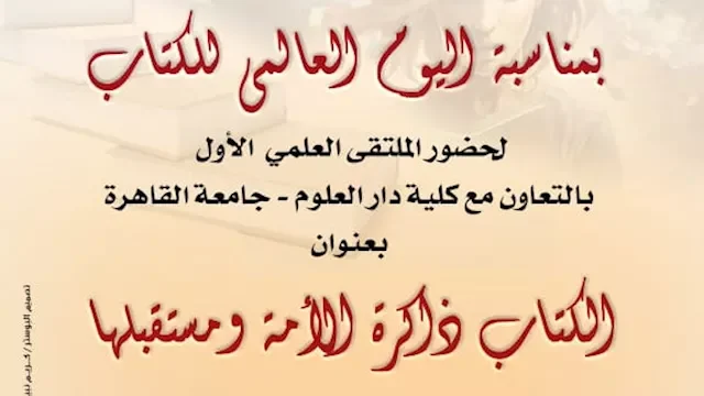 أعلنت الهيئة العامة لدار الكتب والوثائق القومية بالتعاون مع كلية دار العلوم بجامعة القاهرة تنظيم ملتقاها العلمي الأول بعنوان “الكتاب ذاكرة الأمة ومستقبلها” احتفالاً باليوم العالمي للكتاب، ويُعقد غدًا الخميس 23 إبريل في القاهرة بالتعاون بين الجهات المذكورة.