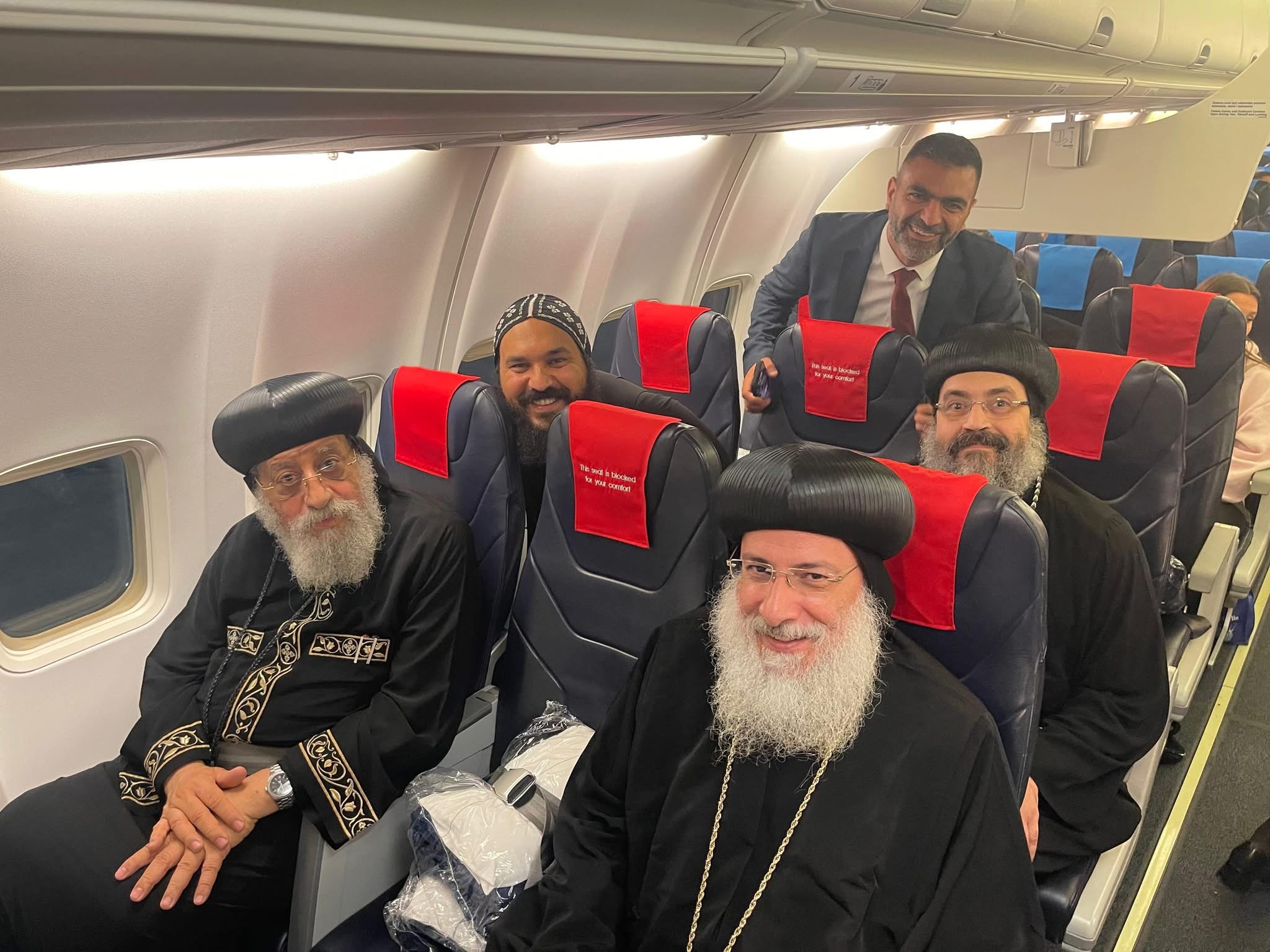 وفي لحظة وداعٍ مؤثرة، كان في توديع قداسته بمطار القاهرة الدولي عدد من القيادات المحبة التي شاركته لحظة الانطلاق، يتقدمهم المحاسب مجدي إسحق، رئيس مجلس إدارة شركة ميناء القاهرة الجوي، والدكتور طارق إسماعيل، رئيس قطاع العلاقات العامة والمراسم، واللواء أيمن عبد الفتاح، رئيس قطاع الأمن، واللواء جمال الجندي، رئيس قطاع العمليات، وعدد من قيادات المطار، الذين قدموا لوداع أبٍ يغادر وطنه ليصل أبناءه في الغربة.