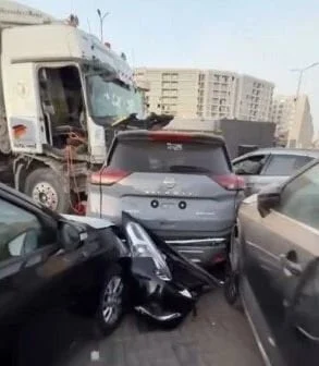 وقع الحادث بمنطقة القطامية، حيث انحرفت سيارة نقل ثقيل (تريلا) عن مسارها نتيجة اختلال عجلة القيادة من يد السائق، مما أدى إلى اصطدامها بسبع سيارات جديدة داخل معرض سيارات، ما تسبب في تهشمها دون وقوع أي إصابات. وتم تحرير محضر بالحادث وتتولى النيابة المختصة التحقيق.