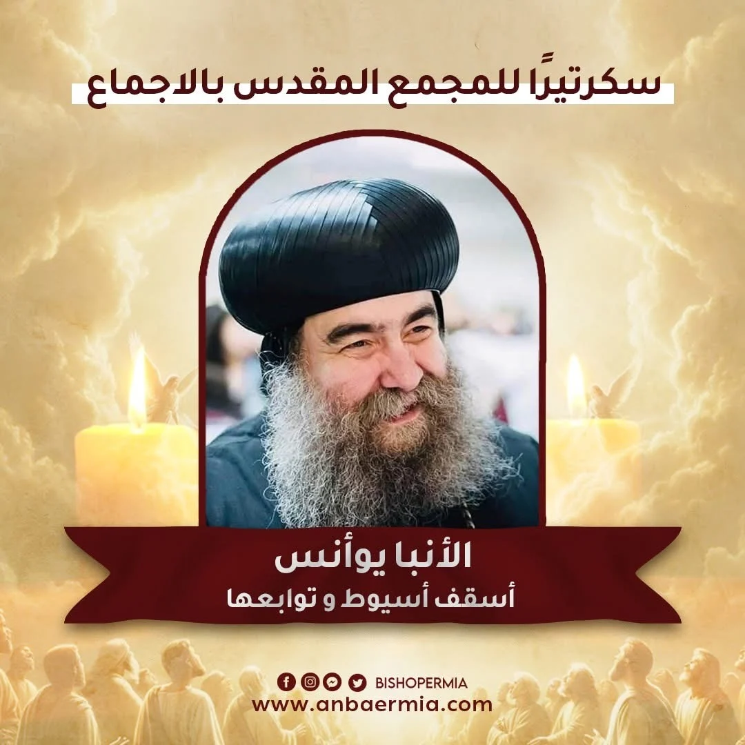 اُنتُخبَ اليوم نيافة الأنبا يوأنس أسقف أسيوط، سكرتيرًا للمجمع المقدس للكنيسة القبطية الأرثوذكسية.